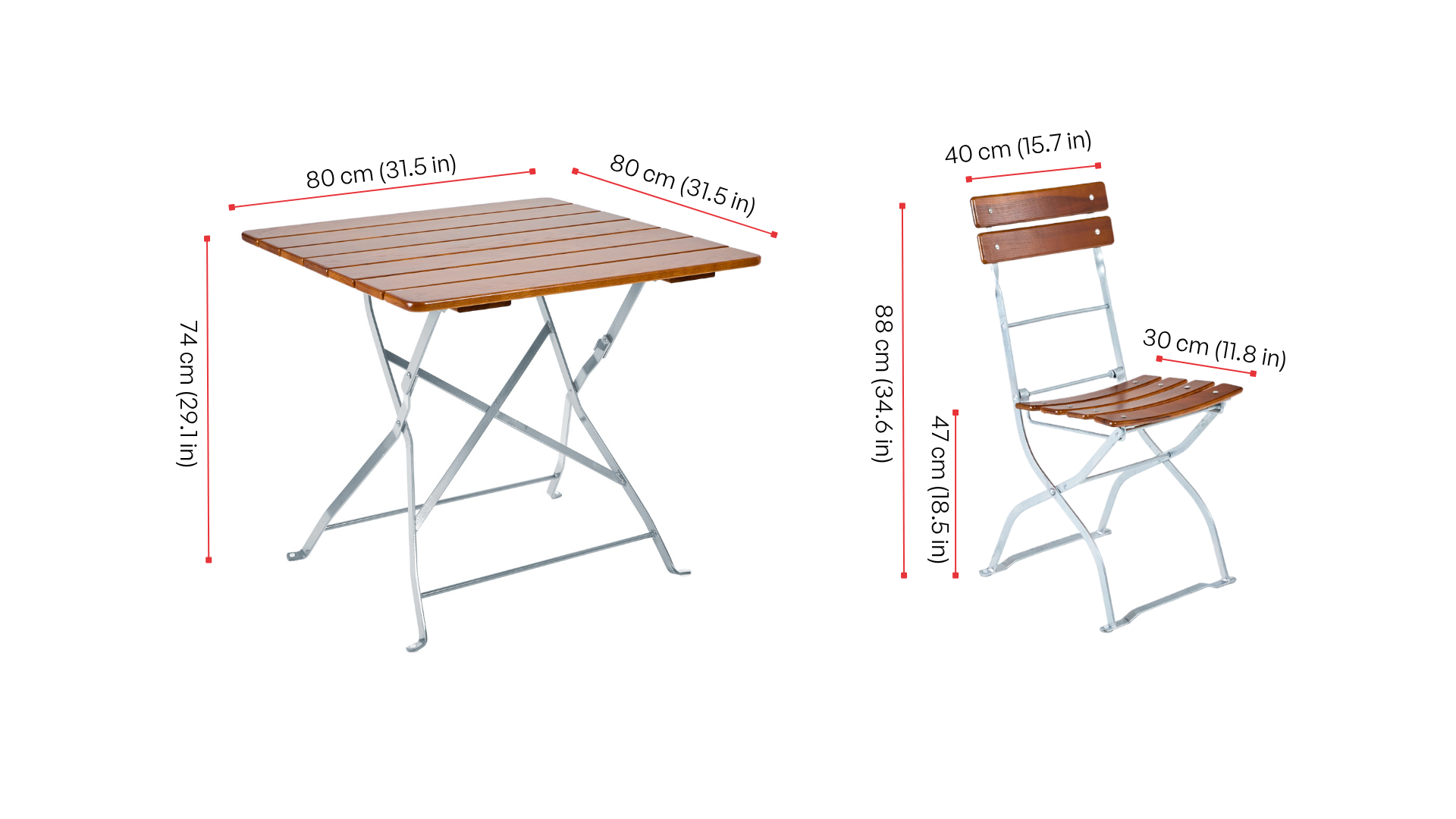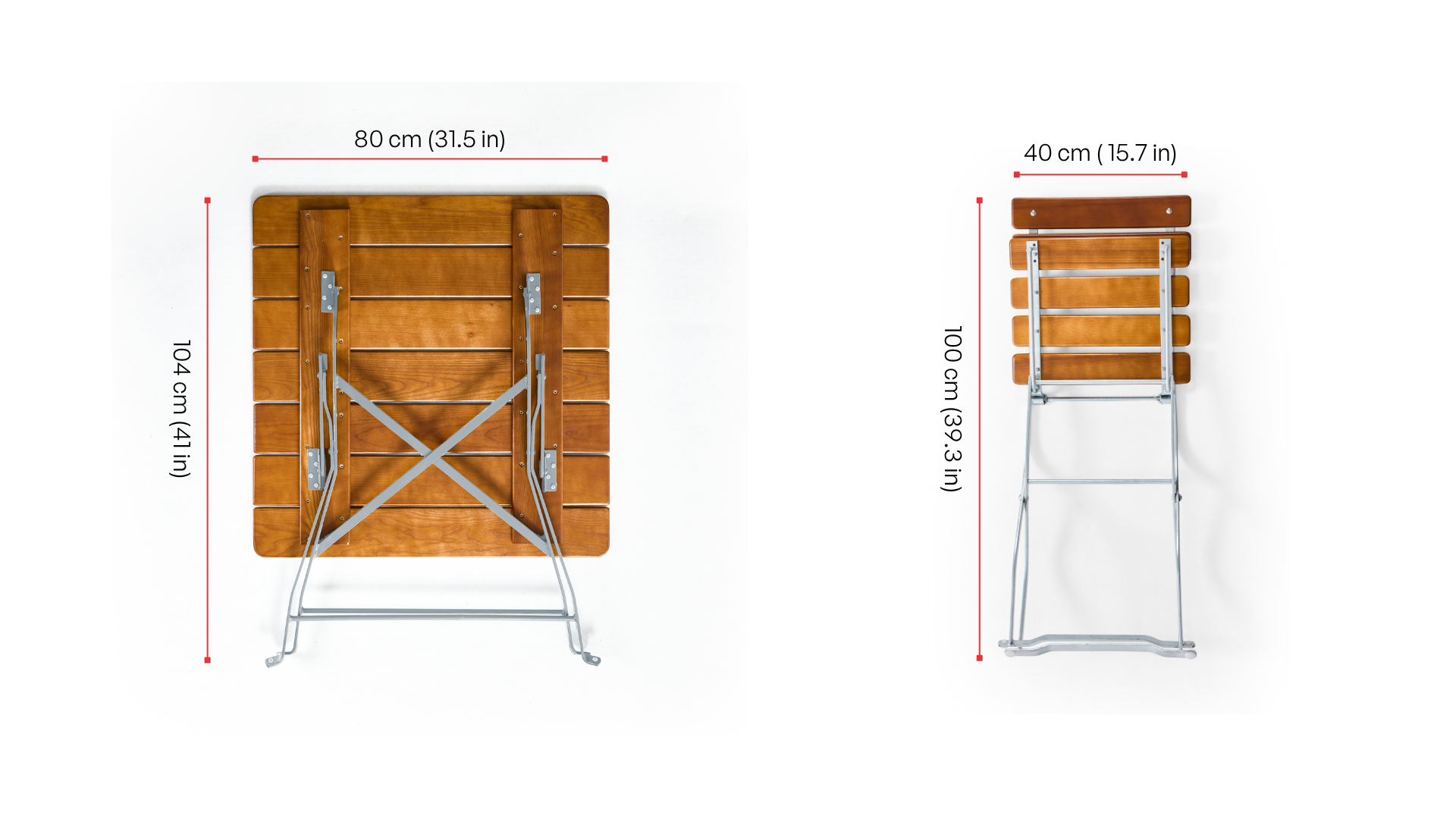 Wie die Brezn zur Weißwurst gehören unsere Biergartenmöbel zur urigen Gemütlichkeit eines Biergartens. Durch ihre robuste Konstruktion stehen sie stabil, auf festem wie auf weichem Untergrund – auf Asphalt, Schotter oder Kies. Und auch Regen brauchen die Biergartenmöbel nicht zu fürchten: Die witterungsbeständige Lasur schützt das Holz zuverlässig vor Nässe. Über die Winterpause lassen sich der quadratische Biertisch sowie die Stühle zusammenklappen und platzsparend verstauen – oder im Innenraum aufstellen: Dank der angebrachten Bodenschoner hinterlassen die Biergartenmöbel keine Kratzer auf empfindlichen Böden.