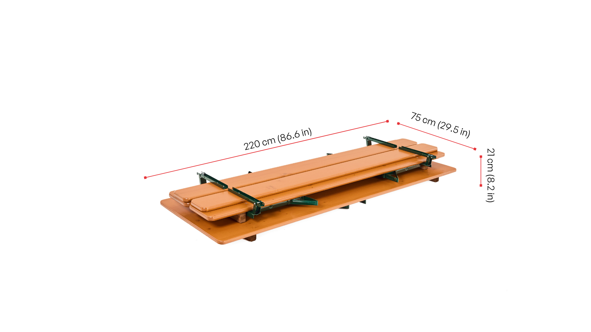 Mit nur wenigen Handgriffen und ganz ohne Werkzeug lässt sich die Bierbank mit Lehne aufbauen. Sobald das Untergestell ausgeklappt und die Bierbank aufgestellt wurde, lässt sich auch die vormontierte Rückenlehne einfach aufklappen. Dank des integierten Bolzensystems sowie einer zusätzlichen Kippsicherung wird die Lehne fixiert. Durch Drücken des Bolzens kann die Rückenlehne wieder eingeklappt und die Bierbank mit Rückenlehne verstaut werden.
