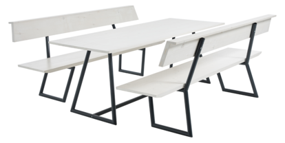 Sie ist das Ergebnis zweier kreativer Welten: Die Garnitur Riva vereint gekonnt die raffinierten Ideen eines talentierten Südtiroler Designers und das technische Know-how des RUKU1952®-Produktionsleiters. Mit ihrem weiß gebeizten Holz und dem minimalistischen, anthrazitfarbene Untergestell versprüht die Riva Indoor sowie Outdoor ein Gefühl ungezwungener Leichtigkeit. Dabei machen die breite Sitzfläche sowie die Rückenlehne ihren Lounge-Charakter aus, mit dem sie uns vor allem an warmen Tagen um den Finger wickelt. Durch die Verwendung langlebiger Materialien garantiert die Riva aber auch bei Regen, Nebel, Wind und Schnee Robustheit und Wetterbeständigkeit.