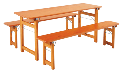 Bierzeltgarnitur mal anders: Ihr Untergestell aus Holz macht die Rustica zu einem Klappmöbel der besonderen Art.
