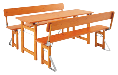 Bierzeltgarnitur mal anders: Die Lehne und das Untergestell aus Holz machen die Rustica zu einem Klappmöbel der besonderen Art.