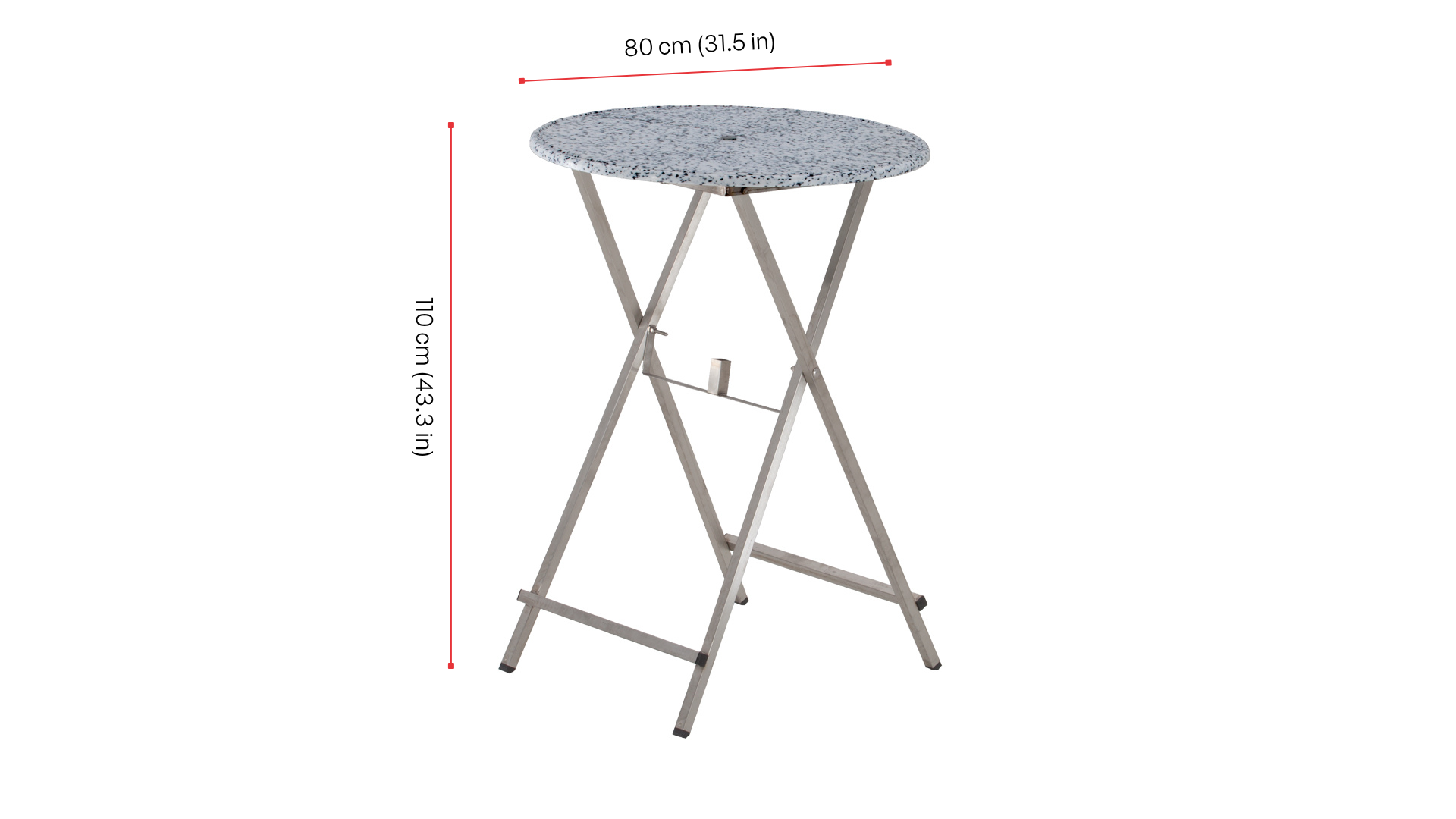 Auch bei häufigem Einsatz, regelmäßigem Auf- und Abbau oder dem Kontakt mit Wasser lässt Sie der rostfreie Stehtisch mit Schirmloch nicht im Stich.